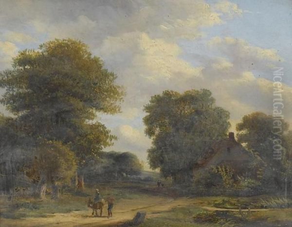 Landschaftsidylle Mit Reiter Und Staffage