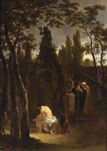 An Italianate Landscape With A Drover At A Fountain With Cattle, Sheep And A Goat