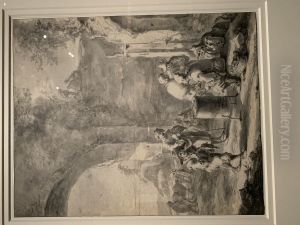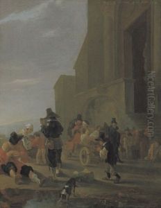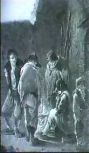 An Encampment Under A Stone Archway With Peasants Roasting Chestnuts Before A Coal Stove
