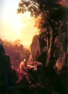 A Rocky Wooded Landscape With A Muleteer And A Shepherd On A Mountain Track