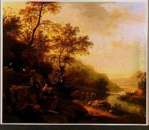 An Extensive Italianate Land- Scape With Shepherds On A Pathby A River, A Tower Beyond