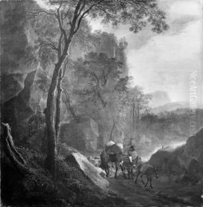 Italianate Landscape With Drovers And Mules On A Path Beside A Torrent