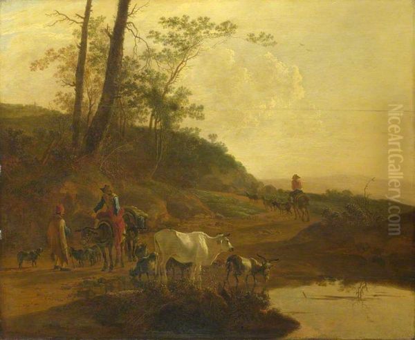 Men with an Ox and Cattle by a Pool