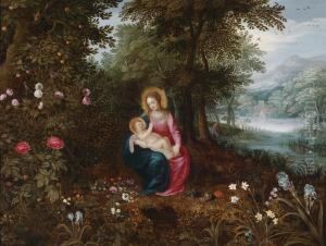 The Virgin And Child In A Feigned Cartouche, Surrounded By Agarland Of Flowers
