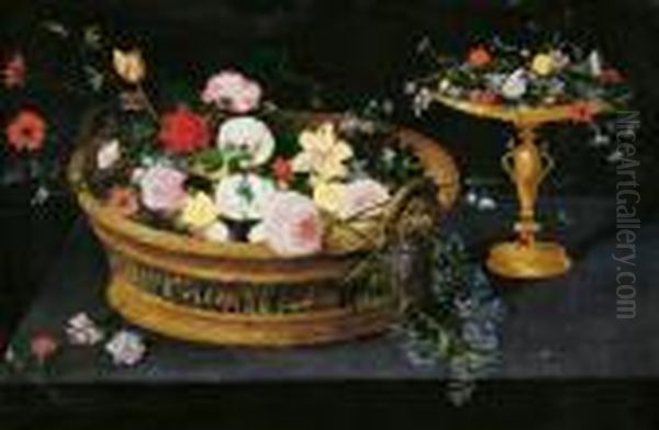 Blumenkorb Und Tazza Mit Blumen.