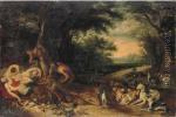 Diana And Her Nymphs Sleeping With Satyrs Approaching