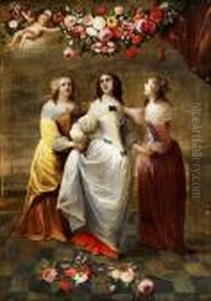 Drei Grazien Unter Einer Blumengirlande