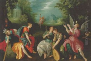 An Allegory Of The Elements Earth, Air And Water: Nymphs Bathing In A Wooded Glade With Trophies Of The Hunt Nearby