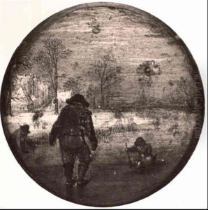 A Hilly Landscape With Peasants And Horse-drawn Carts, A Town Beyond