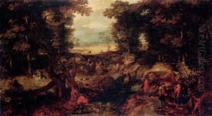 A Wooded Landscape With Villagers And Travellers