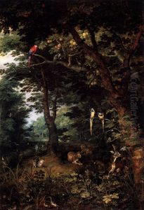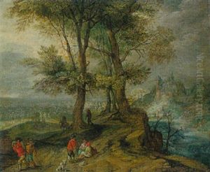 Travellers On A Wooded Path Before A Village