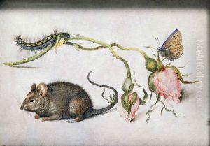 Lilies, Irises, Tulips, Carnations, Roses And Other Flowers In A Vase, With A Dragonfly, A Grasshopper And A Bee, On A Ledge