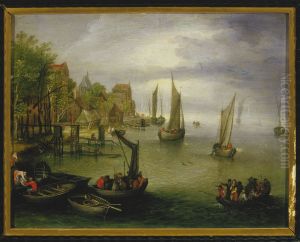 A River Scene With Numerous Figures In The Foreground