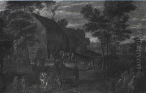 A Wooded Landscape With Villagers And Travellers