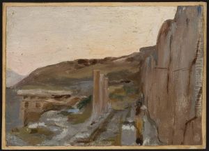 Temple of Apollo and Mount Parnassus in Corinth. From the journey to Greece