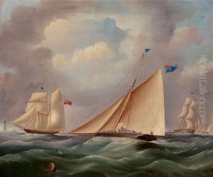Threemasters At Anchor In An Estuary With Bathers At Sunset