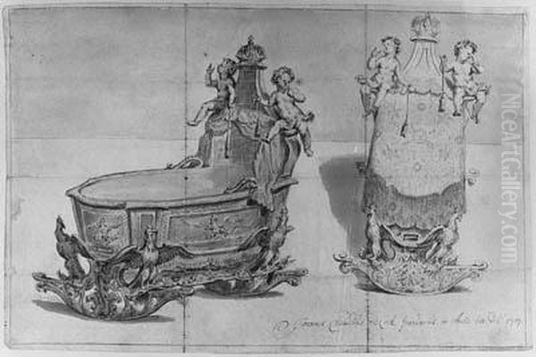 Two Studies Of An Elaborately Decorated Cradle
