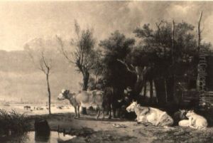 Paesaggio Di Dune Pressohaarlem Con Una Mandria Di Bovini Di Fronte A Una Masseria
