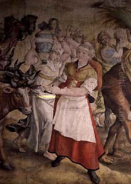 Bring the timeless beauty of Jan Cornelisz Vermeyen's Campaign of Emperor Charles V 1500-58 against the Turks detail of Departure of the Army showing a woman pulling oxen and another shouldering a water carrier, 1535 into your home with a handmade oil painting reproduction. Carefully recreated on canvas by skilled artists using traditional techniques, this piece captures the delicate brushwork, subtle light, and vibrant color of the original masterpiece. With museum-level quality and rich texture, it brings elegance and artistic depth to any space. Enjoy free shipping and make this masterpiece a part of your personal collection.