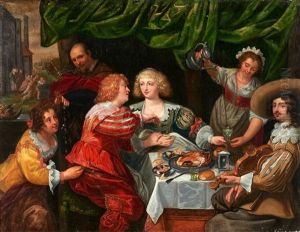 A Merry Company Drinking And Making Music In A Garden Landscape