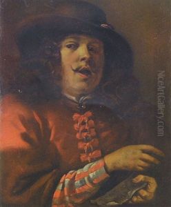 Portrait Of A Young Man With A Feathered Beret, Wearing A Brown Tunic And A White Chemise