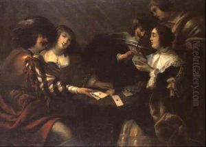 Elegant Figures Seated Around A Table Playing Cards