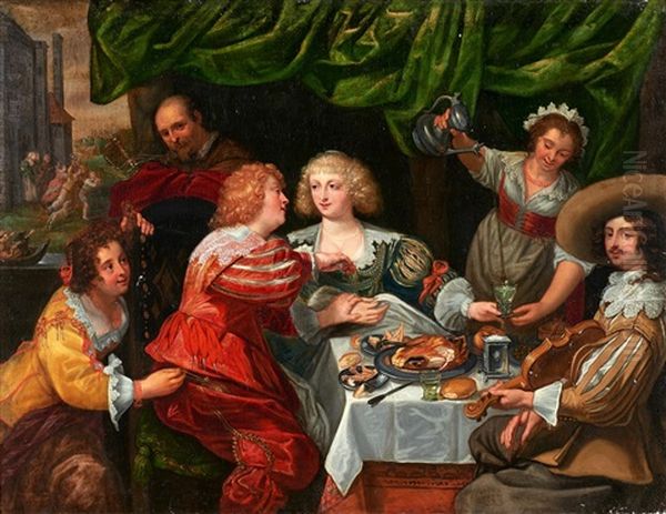 Bring the timeless beauty of Jan Cossiers's Tafelnde Gesellschaft into your home with a handmade oil painting reproduction. Carefully recreated on canvas by skilled artists using traditional techniques, this piece captures the delicate brushwork, subtle light, and vibrant color of the original masterpiece. With museum-level quality and rich texture, it brings elegance and artistic depth to any space. Enjoy free shipping and make this masterpiece a part of your personal collection.