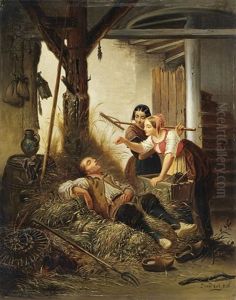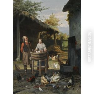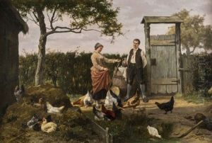 Couple De Bergers Amoureux Pres Du Puits Au Poulailler