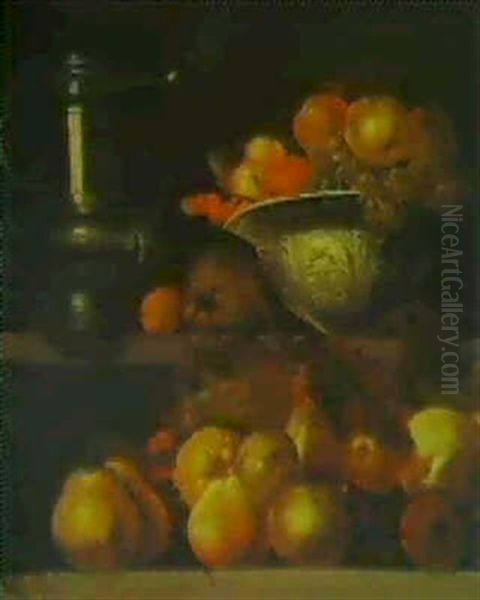 A Still Life Of Fruit On A Lower Ledge With On An Upper Ledge A Wan-li Porcelain Bowl Filled With Fruit