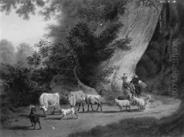 Paesaggio Con Pastorella Con Gregge E Viandante