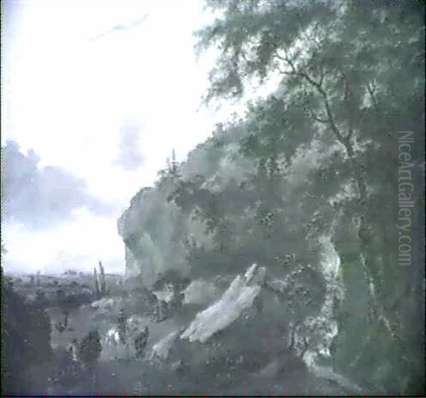 Raububerfall In Waldlandschaft Mit Einem Wasserfall Rechts  Hinter Baumen Oil Painting by Jan Both