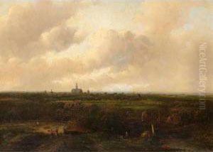 Figures And Cattle In A Panoramic Landscape