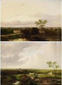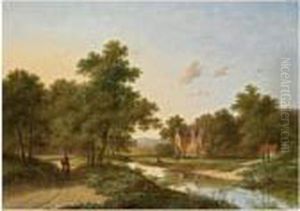A Wooded River Landscape With Travellers; And Travellers Resting Bya Stream