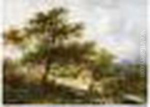 A Wooded Landscape With Peasants Resting On A Sandy Track