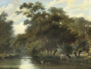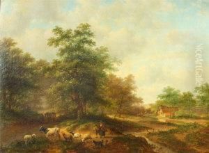 Peasants With Their Cattle In A Wooded Riverlandscape