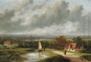 Travellers In A Summer Landscape, A Village In The Distance