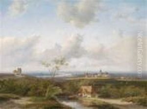 Extensive Landscape With Figures; River Scene With Fisherman