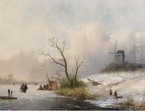 A Winter Landscape With Skaters Near A 'koek En Zopie'