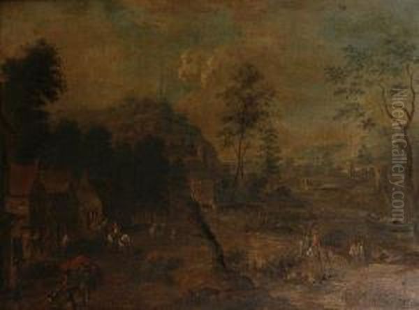 A Village Landscape With Riders