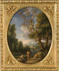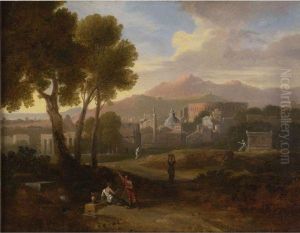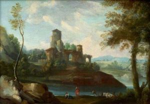 An Arcadian Landscape With Figures, A Classical Temple Beyond