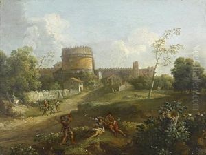 Paesaggio Romano Con Figure E Sfondodi Borgo