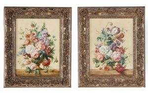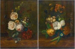 Bouquet De Fleurs Sur Un Entablement (+ Another; Pair)
