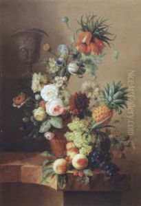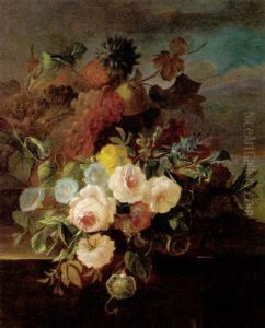 Still Life With Grapes, Other Fruit And Flowers On A Stone Ledge