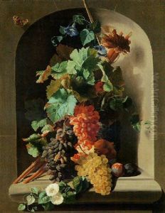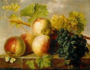 Nature Morte A La Grappe De Raisin Et Aux Peches Sur Un Entablement