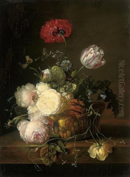 Bring the timeless beauty of Jan Frans Van Dael's Tulips, Roses, Peonies, Jasmin, Convulvulus, Poppies And Other Summer Blooms In A Basket On A Ledge into your home with a handmade oil painting reproduction. Carefully recreated on canvas by skilled artists using traditional techniques, this piece captures the delicate brushwork, subtle light, and vibrant color of the original masterpiece. With museum-level quality and rich texture, it brings elegance and artistic depth to any space. Enjoy free shipping and make this masterpiece a part of your personal collection.