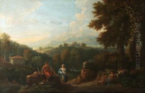 A Classical Landscape With Goatherds Resting Above A River Valley