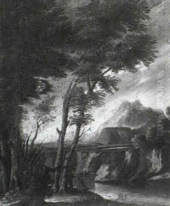 A Classical Landscape With Figures Resting In The Foreground