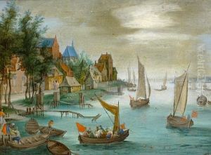 Landscape With Figures In A Village Beside A River