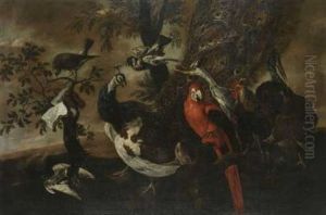 Still Life With Hares, Partridges, A Jay And A Kingfisher, Together With Other Song-birds In A Landscape Setting