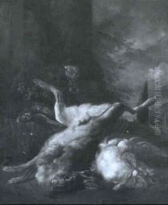 Jagdstilleben Mit Erlegten Vogeln Und Einem Hasen, Bewacht Von Einem Huhnerhund